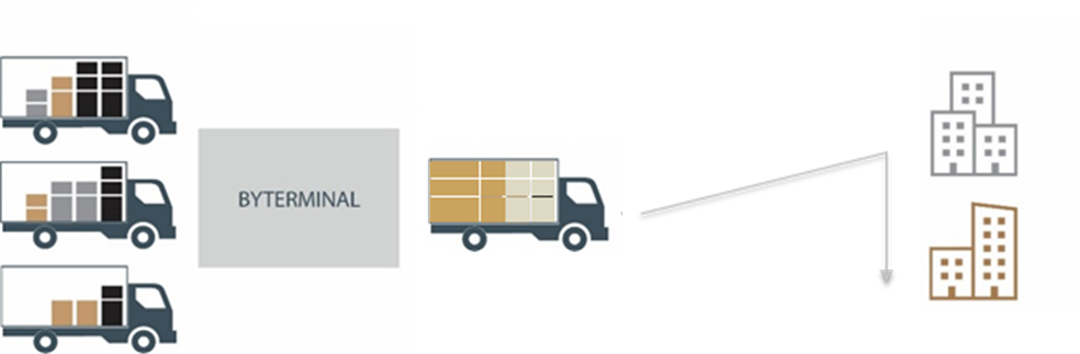 I forbindelse med utbyggingen av Hammarby Sjöstad i Stockholm ble det obligatorisk å benytte en felles samleterminal for leveranser mindre enn 4 paller til byggeplassen. Det var 10 byggentreprenører på byggeplassen. Antallet leveranser (lastebilankomster) til byggeplassen med små volumer ble redusert med 80%. Dette bidro til bedre miljø for innbyggerne som flyttet inn i tidlig ferdige boliger, mindre trafikkork ved anleggene og bedre arbeidsmiljø (Lundesjö 2019).