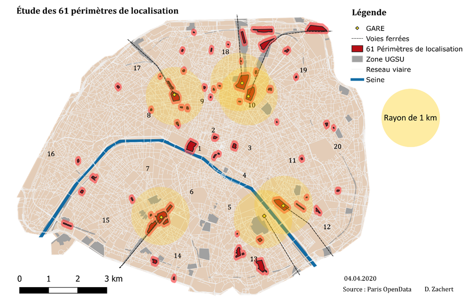 Paris har 205 slike lokasjonsperimetre, hvorav 61 er dedikert til urbane logistikkanlegg. En utbygger som ønsker å utvikle tomten med nye bygg eller endre en bygning eller et anlegg på en av de 61 lokasjonsperimetrene for logistikk, er forpliktet til å innlemme et omlastningspunkt (hub) eller lager for miljøvennlig bylogistikk i prosjektet, og det er satt konkrete krav til størrelsen av arealet for dette formålet innen hver logistikkperimeter. Ved mindre utbygginger i et område kan kravet utsettes til seinere byggeprosjekter. (Dablanc, 2023; Presttun & Jenserud, 2024).