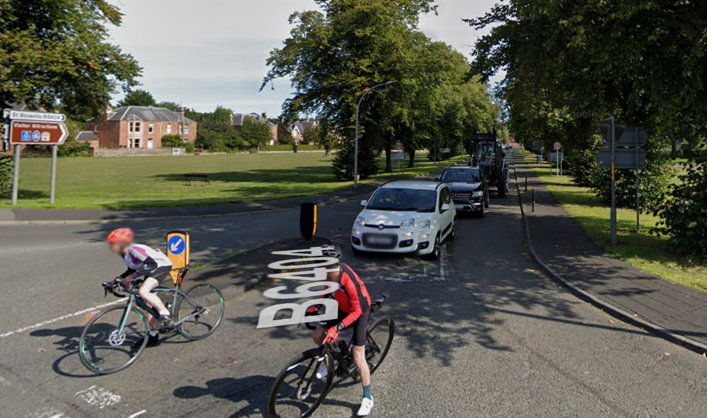 Figur 8: Skilting av fartsgrense 20 mph ved innkjøring til landsbyer i Scottish borders (Kilde: Google maps). Til høyre - 20 mph -skiltet sees bak traktoren.